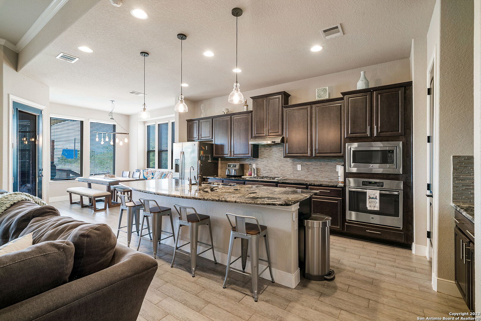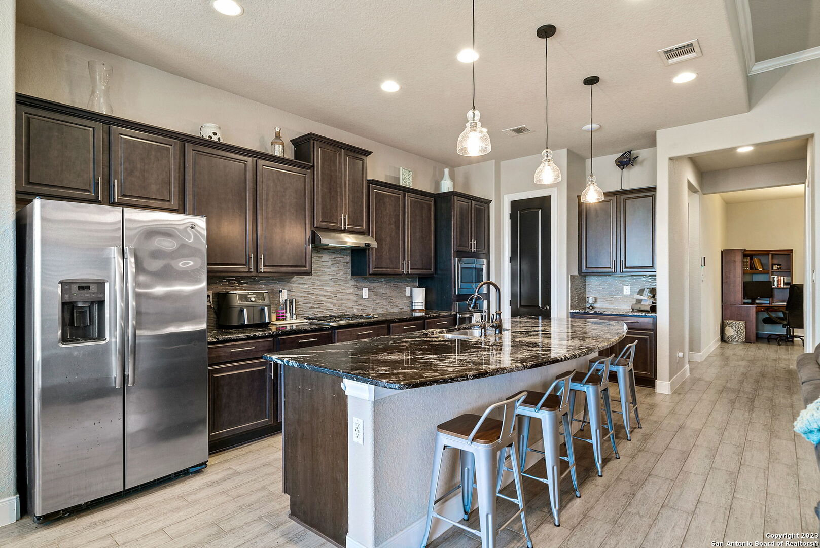 !!!MOTIVATED SELLER!!!RAPID CLOSE AVAILABLE!!! Looking to be in your next dream home before the first of the year? Look no further than this 3,000 square foot traditional home that has so much to offer! Nestled in a prime location and bordered by a greenbelt, this home offers you additional privacy and no backyard neighbors. The chef’s inspired kitchen is adorned with granite countertops, built-in stainless steel appliances, and an oversized island that makes food preparation or hosting gatherings a breeze. Opening up to the main living room and breakfast nook, this open floor plan is one to be enjoyed with a wood burning fireplace as the main focal point. The primary bedroom is a true retreat located on the main level providing you with extra privacy. With a full en suite and oversized walk-in closet, this primary offers comfort and functionality. An additional bedroom and en suite can be found on the first floor – perfect for multigenerational living. Upstairs pleasantly surprised with the expansive game room and sizable secondary bedrooms. There is no shortage of space with the downstairs office and formal dining room. The backyard is a dream come true for entertainers, boasting a covered patio and extended wooden deck. This home and backyard make unwinding after a long day effortless. With its convenient location and easy access to some of San Antonio’s most noted attractions, this home is a must see. Schedule a showing today to experience the charm and beauty this home holds!