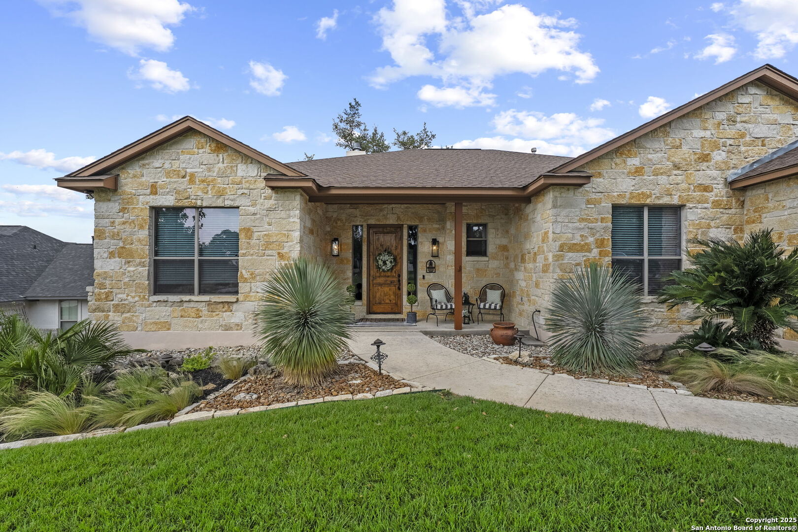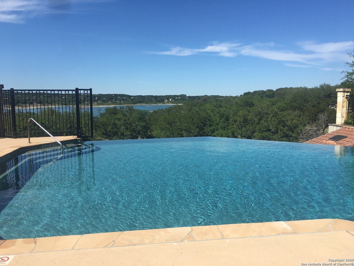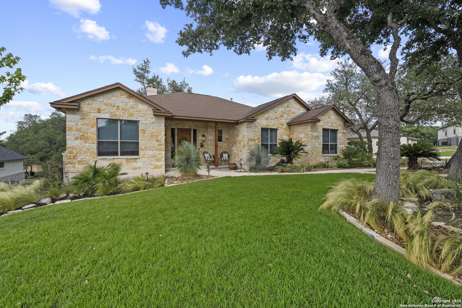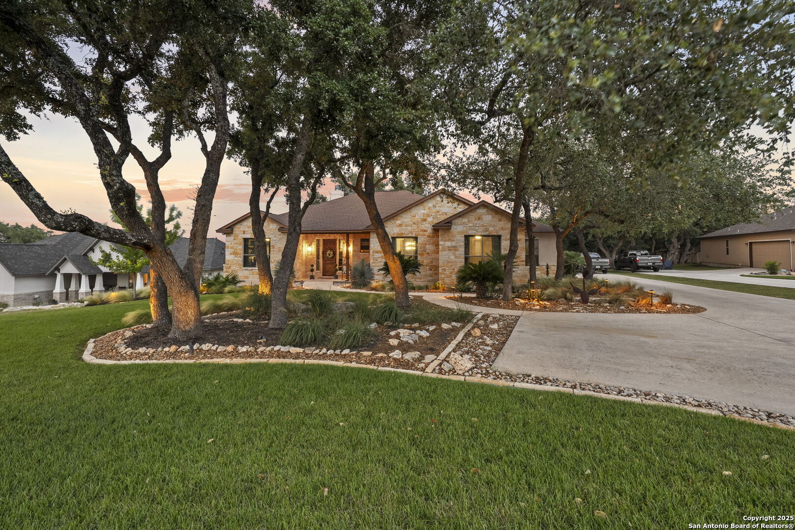 Welcome to this charming 3 bedroom, 2.5 bath home with a dedicated office, spacious master bedroom and master bath with separate shower and tub, nestled in the highly sought after, gated community of Las Brisas at Canyon Lake. This property features beautifully designed landscaping with a well manicured lawn, mature trees, creating your own peaceful backyard retreat. Enjoy outdoor living with expansive decking, railing to match the rod iron fully fenced backyard, outside kitchen and a spacious covered patio, ideal for entertaining or relaxing in nature. The home also includes a 3-car garage, with the third bay offering ample storage room (10.6 x 8.8) and space for a utility vehicle or golf cart. Inside, the thoughtfully designed layout offers the perfect blend of comfort and functionality with a breakfast area featuring a custom built-in bourbon bar open to the kitchen and living area with a touch of stone throughout. Schedule your showing today for this enchanting hill country home located on the south side of the lake. Kitchen refrigerator, washer and dryer convey. Water softener is new, water heater new, new ceiling fans throughout, new gas range,BRAND NEW Trane 14.3 Seer2 4.0 Ton 80% Gas Full System Replacement and septic has updated controller, pump, and floats. There is also extra storage under deck