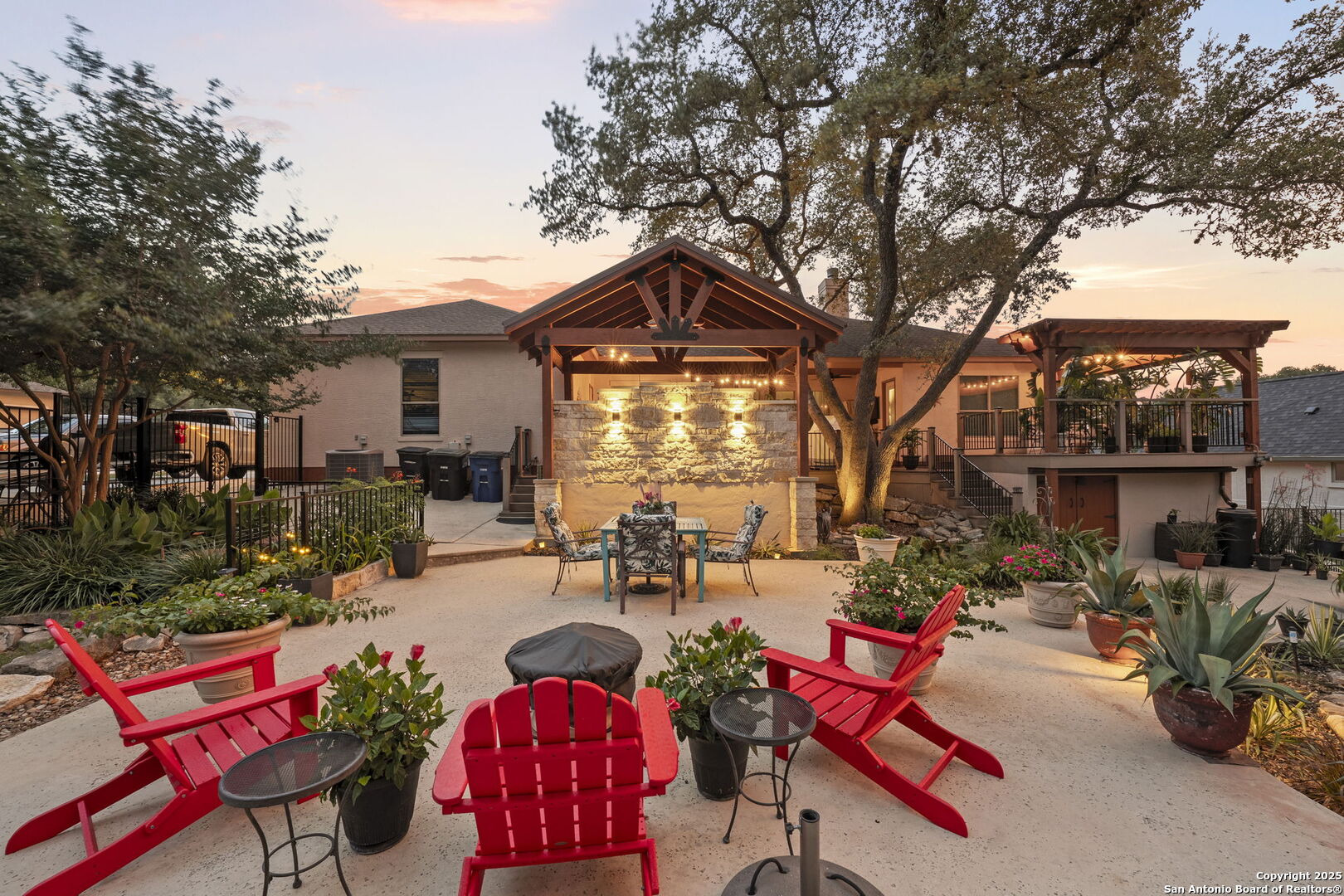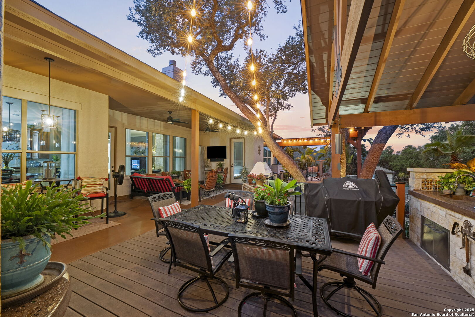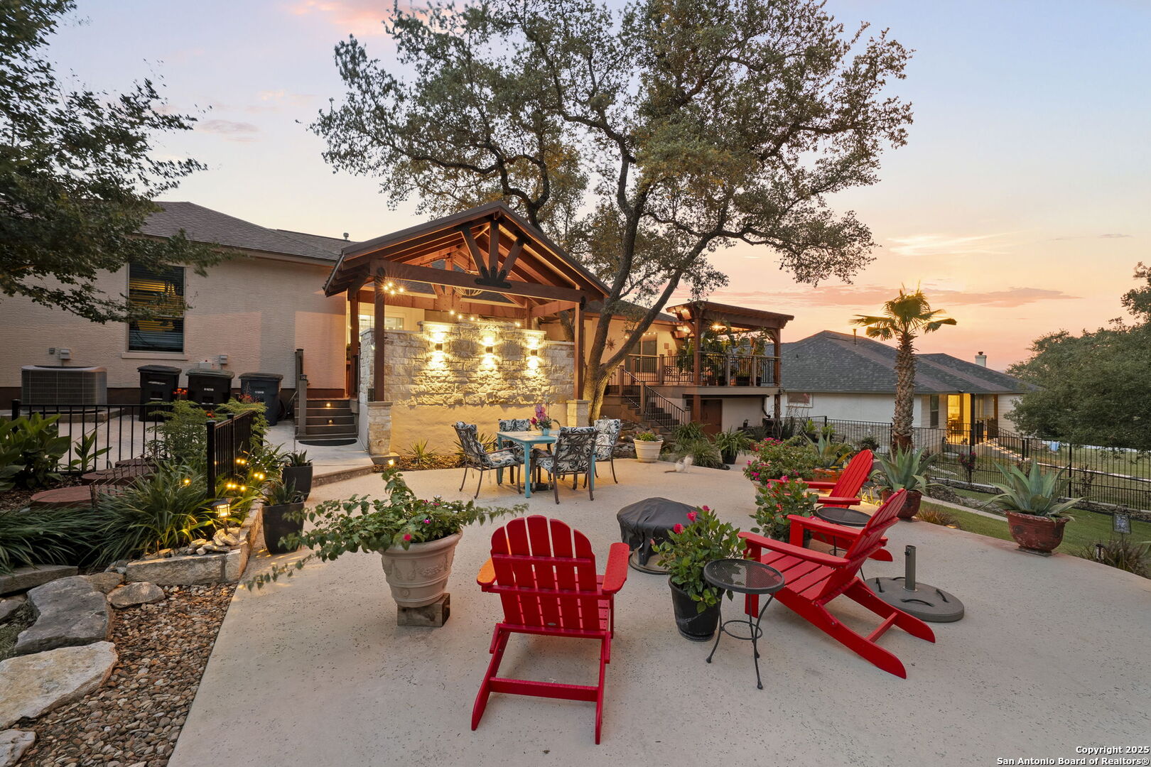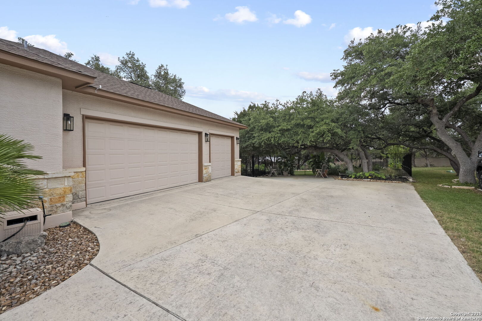 Welcome to this charming 3 bedroom, 2.5 bath home with a dedicated office, spacious master bedroom and master bath with separate shower and tub, nestled in the highly sought after, gated community of Las Brisas at Canyon Lake. This property features beautifully designed landscaping with a well manicured lawn, mature trees, creating your own peaceful backyard retreat. Enjoy outdoor living with expansive decking, railing to match the rod iron fully fenced backyard, outside kitchen and a spacious covered patio, ideal for entertaining or relaxing in nature. The home also includes a 3-car garage, with the third bay offering ample storage room (10.6 x 8.8) and space for a utility vehicle or golf cart. Inside, the thoughtfully designed layout offers the perfect blend of comfort and functionality with a breakfast area featuring a custom built-in bourbon bar open to the kitchen and living area with a touch of stone throughout. Schedule your showing today for this enchanting hill country home located on the south side of the lake. Kitchen refrigerator, washer and dryer convey. Water softener is new, water heater new, new ceiling fans throughout, new gas range,BRAND NEW Trane 14.3 Seer2 4.0 Ton 80% Gas Full System Replacement and septic has updated controller, pump, and floats. There is also extra storage under deck