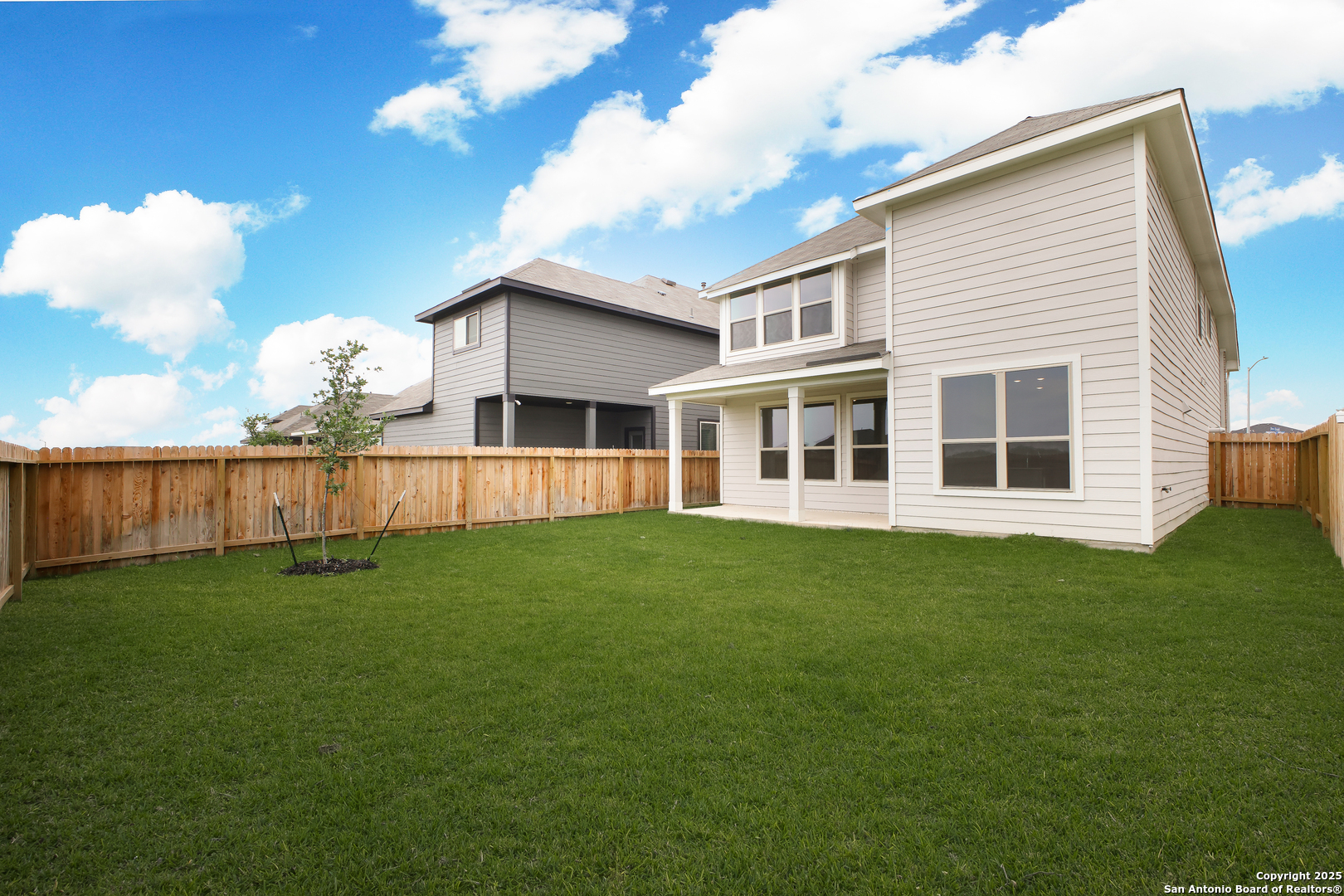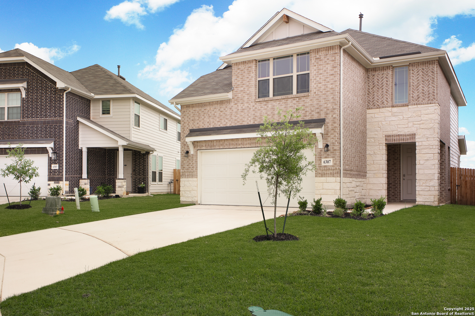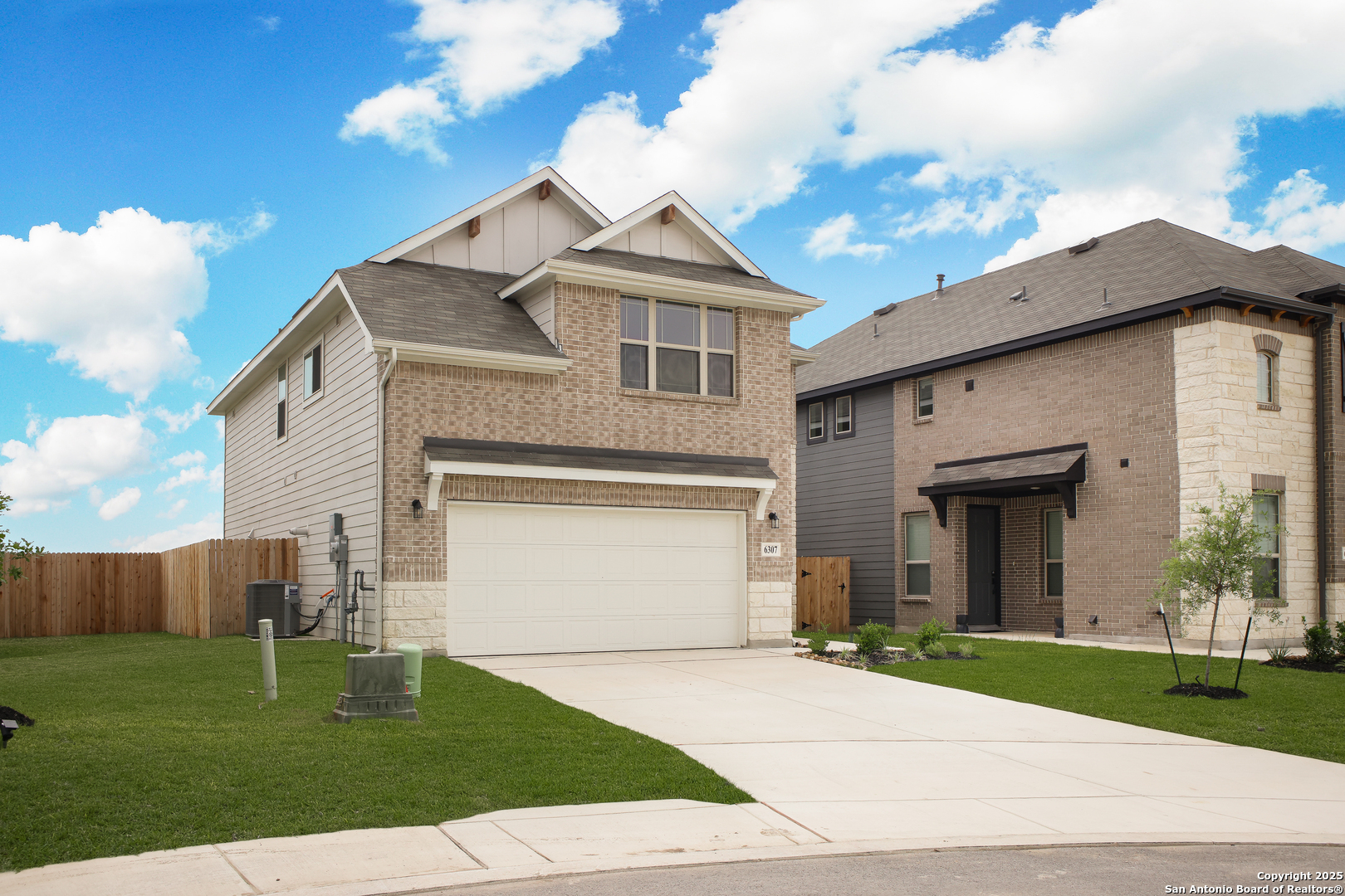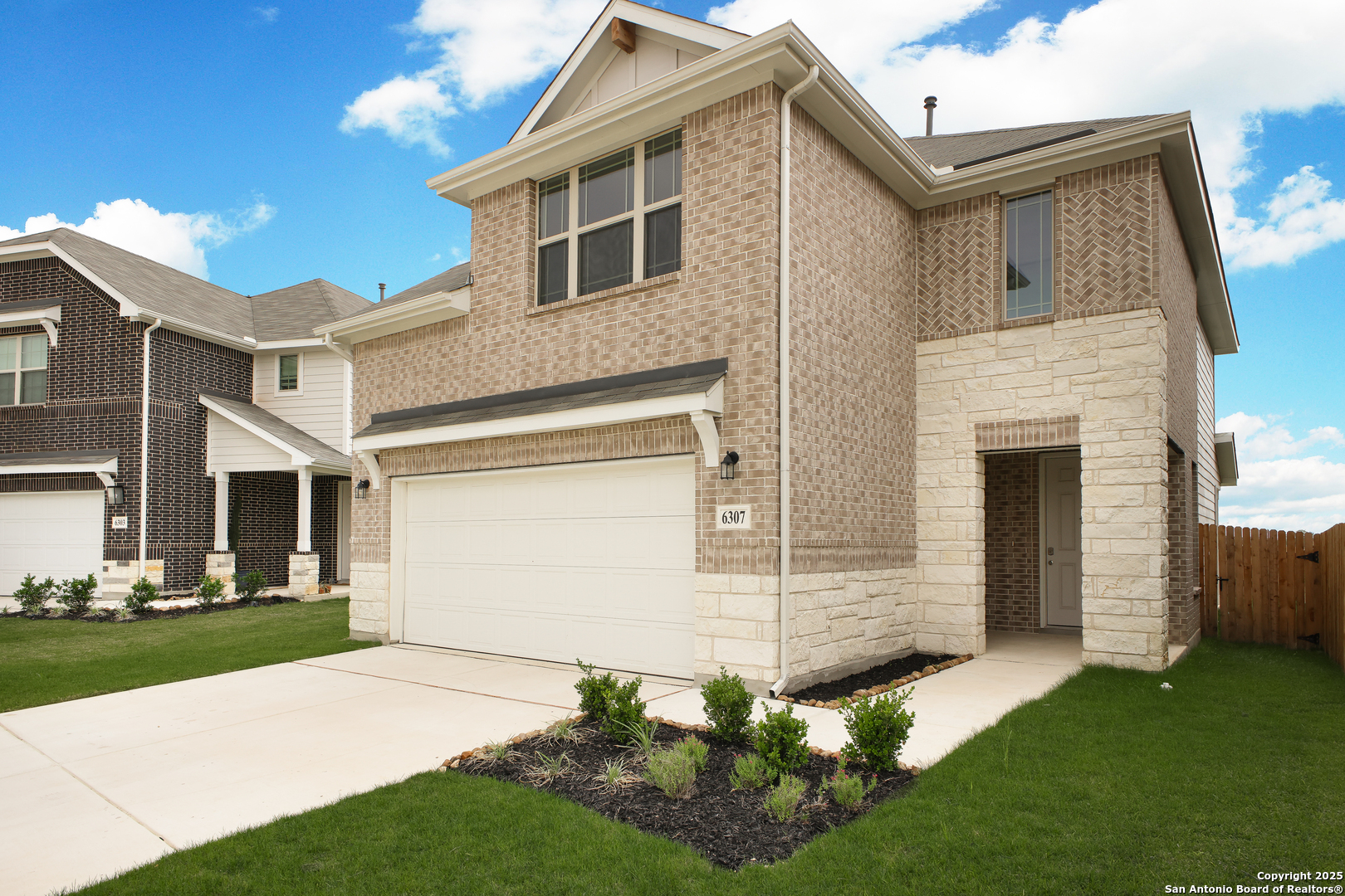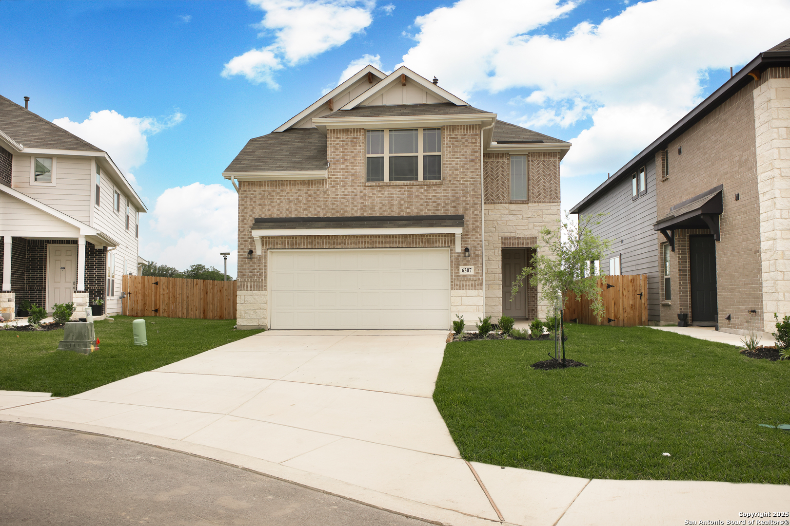 MLS# 1824467 – Built by HistoryMaker Homes – Ready Now! ~ Welcome to your dream home nestled in the picturesque community of Morgan Meadows on the northwest side of San Antonio. This charming abode boasts 3 bedrooms, 2.5 bathrooms, and a generous 1962 square feet of living space, ensuring comfort and style for you and your family. As you step onto the property, you’re greeted by a lush green lawn and a meticulously maintained landscaping, enhanced by a convenient sprinkler system both in the front and back yards. Enjoy the serene peace of having no neighbors behind your home. The oversized patio beckons for leisurely afternoons or outdoor gatherings with friends, promising delightful moments under the Texas sun. Upon entering the home, you’ll immediately notice the modern and sophisticated design featuring black fixtures throughout, adding a touch of elegance to every corner. The open concept kitchen is a culinary enthusiast’s dream, equipped with sleek stainless steel appliances, a gas stove for precision cooking, and stunning quartz countertops that seamlessly blend beauty with functionality. Ascending to the second floor, the oversized primary bedroom awaits, offering a serene retreat after a long day. This spacious sanctuary boasts not one, but two closets, ensuring ample storage space for your wardrobe and personal belongings. Outside of your personal oasis, the Morgan Meadows community offers an array of amenities to enrich your lifestyle. Take a refreshing dip in the sparkling swimming pool, challenge friends to a game of pickleball on the court, or watch little ones laugh and play on the playground-there’s something for everyone to enjoy. With its perfect blend of comfort, convenience, and luxury, this home in Morgan Meadows is more than just a place to live-it’s a haven where memories are made and cherished for years to come.