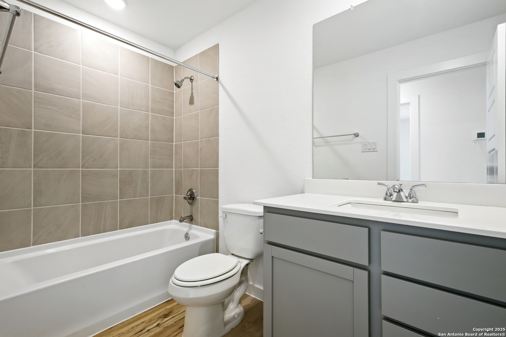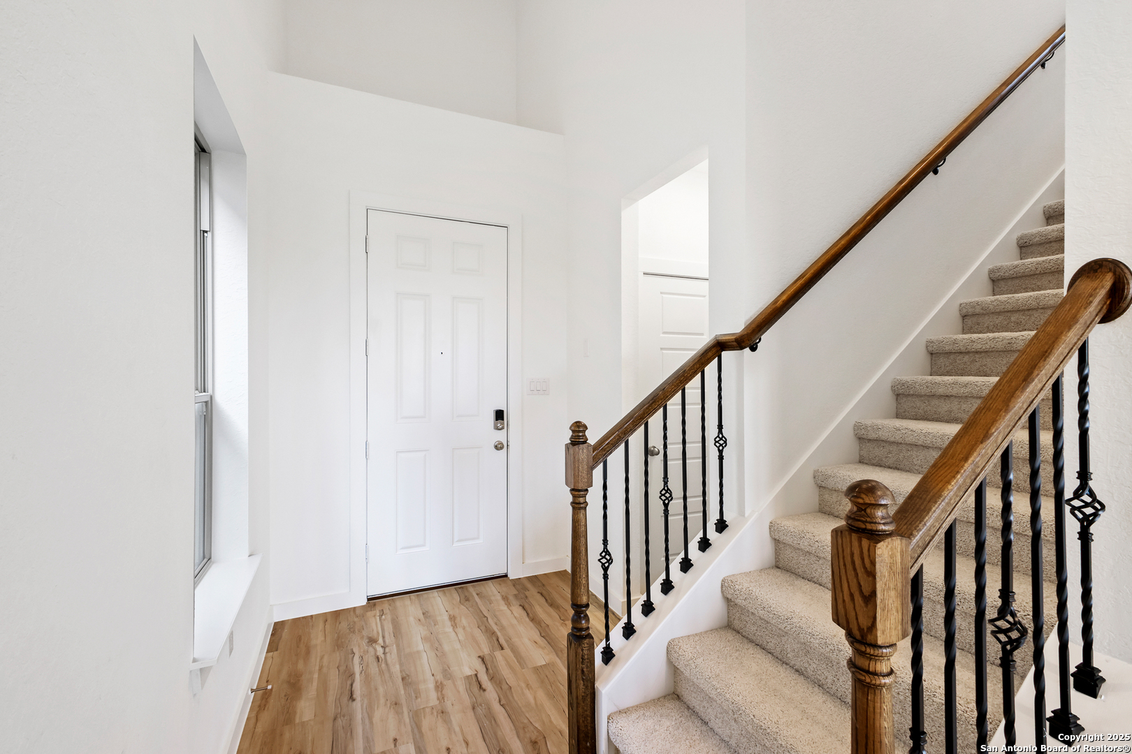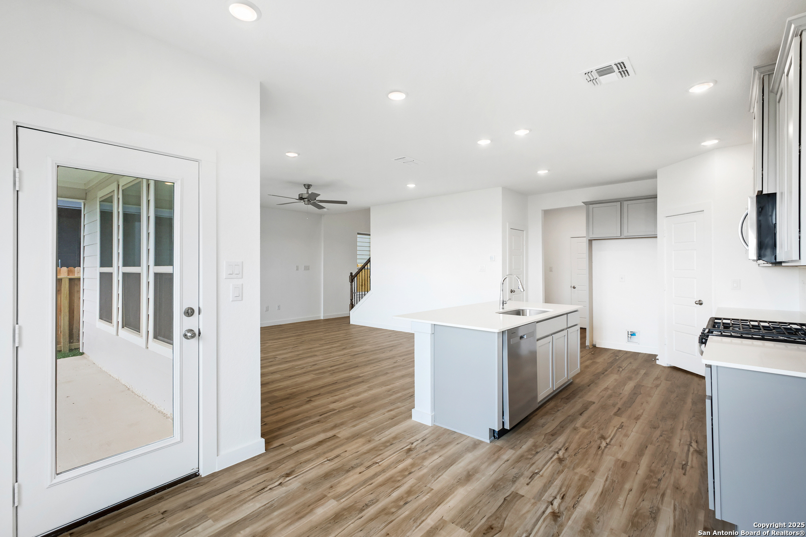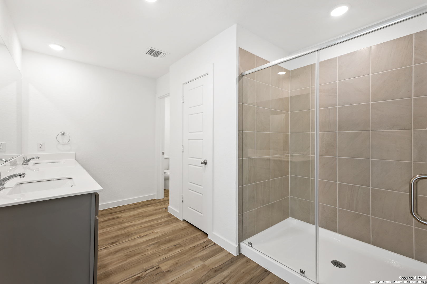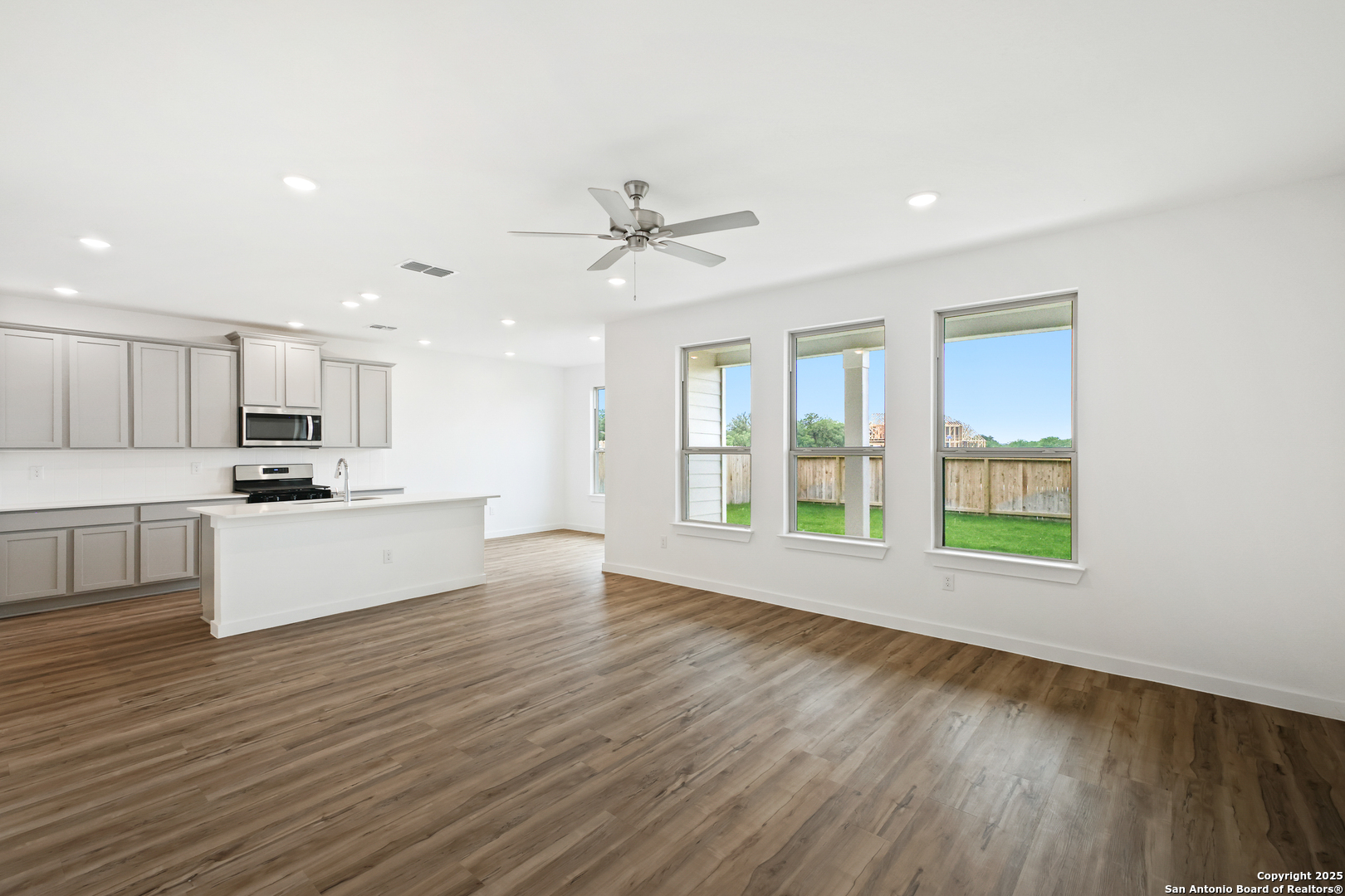MLS# 1824467 – Built by HistoryMaker Homes – Ready Now! ~ Welcome to your dream home nestled in the picturesque community of Morgan Meadows on the northwest side of San Antonio. This charming abode boasts 3 bedrooms, 2.5 bathrooms, and a generous 1962 square feet of living space, ensuring comfort and style for you and your family. As you step onto the property, you’re greeted by a lush green lawn and a meticulously maintained landscaping, enhanced by a convenient sprinkler system both in the front and back yards. Enjoy the serene peace of having no neighbors behind your home. The oversized patio beckons for leisurely afternoons or outdoor gatherings with friends, promising delightful moments under the Texas sun. Upon entering the home, you’ll immediately notice the modern and sophisticated design featuring black fixtures throughout, adding a touch of elegance to every corner. The open concept kitchen is a culinary enthusiast’s dream, equipped with sleek stainless steel appliances, a gas stove for precision cooking, and stunning quartz countertops that seamlessly blend beauty with functionality. Ascending to the second floor, the oversized primary bedroom awaits, offering a serene retreat after a long day. This spacious sanctuary boasts not one, but two closets, ensuring ample storage space for your wardrobe and personal belongings. Outside of your personal oasis, the Morgan Meadows community offers an array of amenities to enrich your lifestyle. Take a refreshing dip in the sparkling swimming pool, challenge friends to a game of pickleball on the court, or watch little ones laugh and play on the playground-there’s something for everyone to enjoy. With its perfect blend of comfort, convenience, and luxury, this home in Morgan Meadows is more than just a place to live-it’s a haven where memories are made and cherished for years to come.