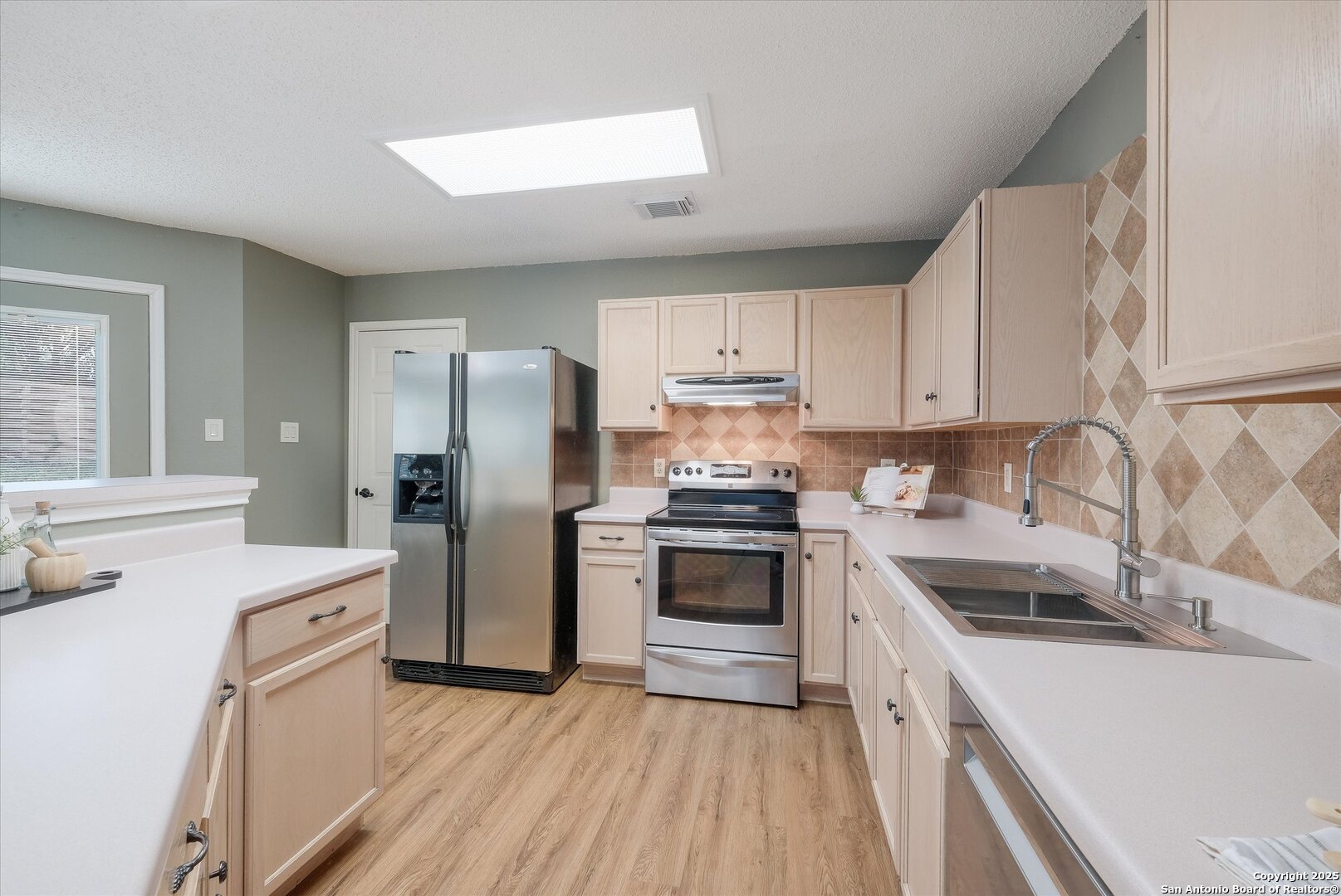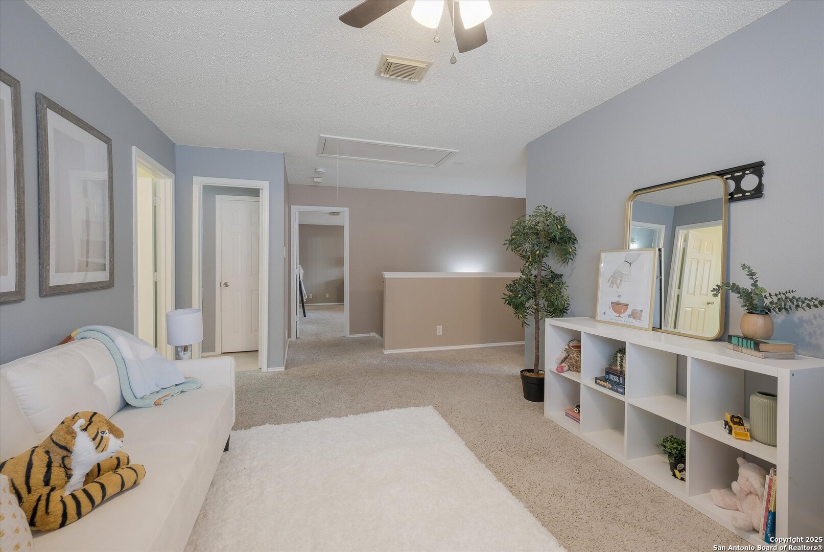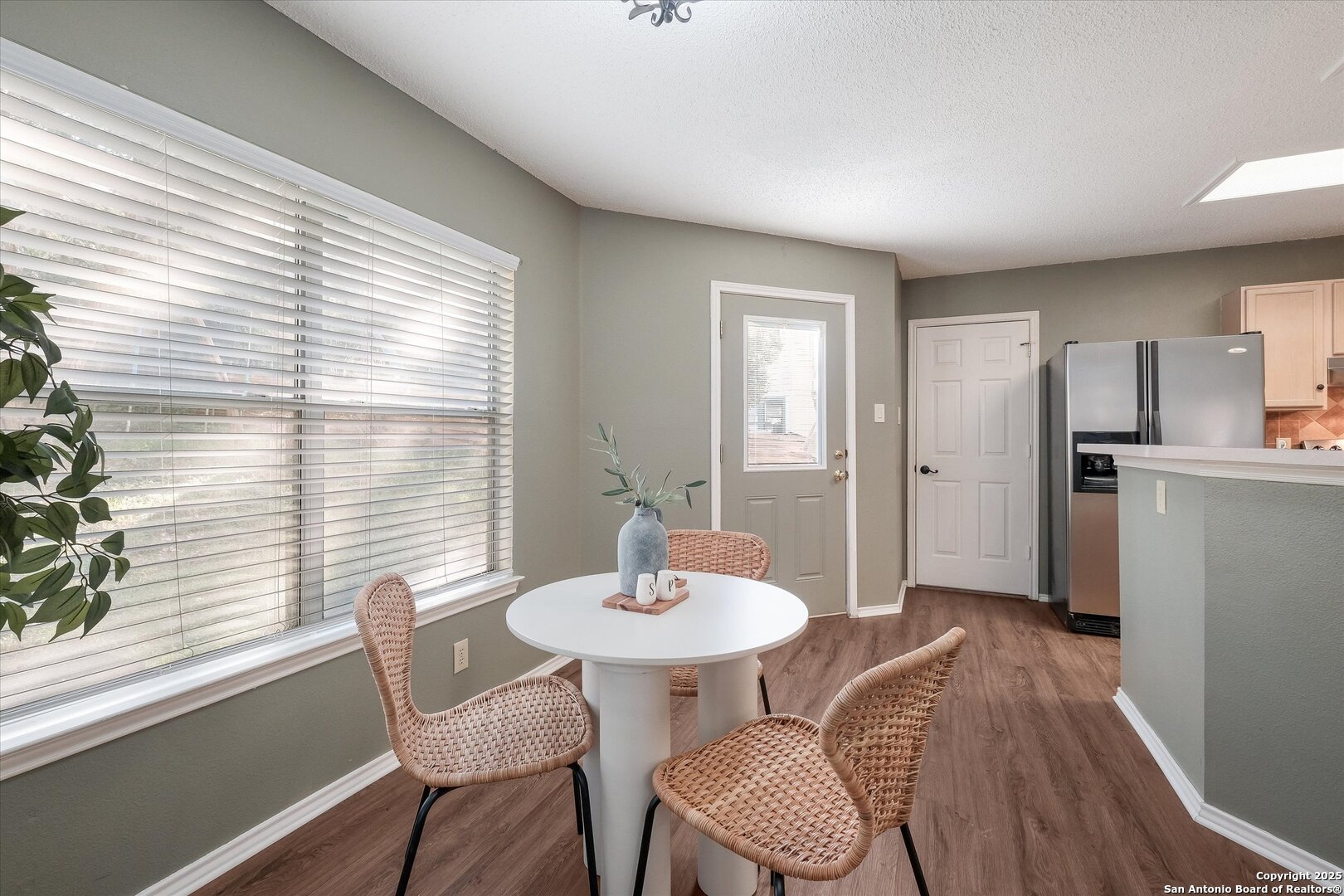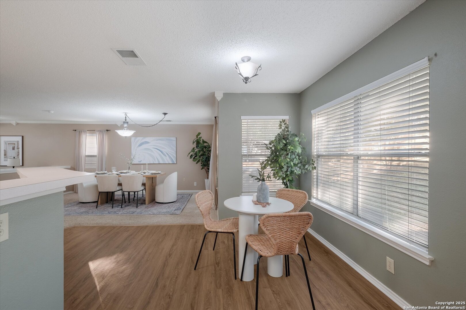 Welcome to 9115 Windward Trace! This spacious 3-bedroom, 2.5-bath home offers 2,421 sqft of comfort and versatility. The main level features open yet defined living and dining areas, separated by a half wall that adds structure without sacrificing the flow. The kitchen has been updated (2025) with a modern sink, dishwasher, and vinyl plank flooring. The super spacious pantry adds function, and breakfast nook brings in plenty of natural light and charm. Upstairs, you’ll find all three bedrooms along with a loft, ideal as a second living area, home office, or playroom. The oversized primary suite includes two walk-in closets and a spacious bath with dual vanities on opposite sides of the room, separated by a wall for added privacy. One of the secondary bedrooms also features an oversized closet. Enjoy a charming front porch, a new roof (2023), brand new HVAC system (2025), and a backyard with mature trees and room to entertain. This move-in ready home has been thoughtfully maintained and offers plenty of space to live, work, and play. Just a short walk from the house the amenity center is packed with features for all ages. Enjoy a sparkling pool with plenty of seating, a large covered pavilion for gatherings, multiple playgrounds, a basketball court, picnic spots, and winding trails. Whether you’re cooling off, hosting friends, or letting the kids play, it’s all right around the corner.