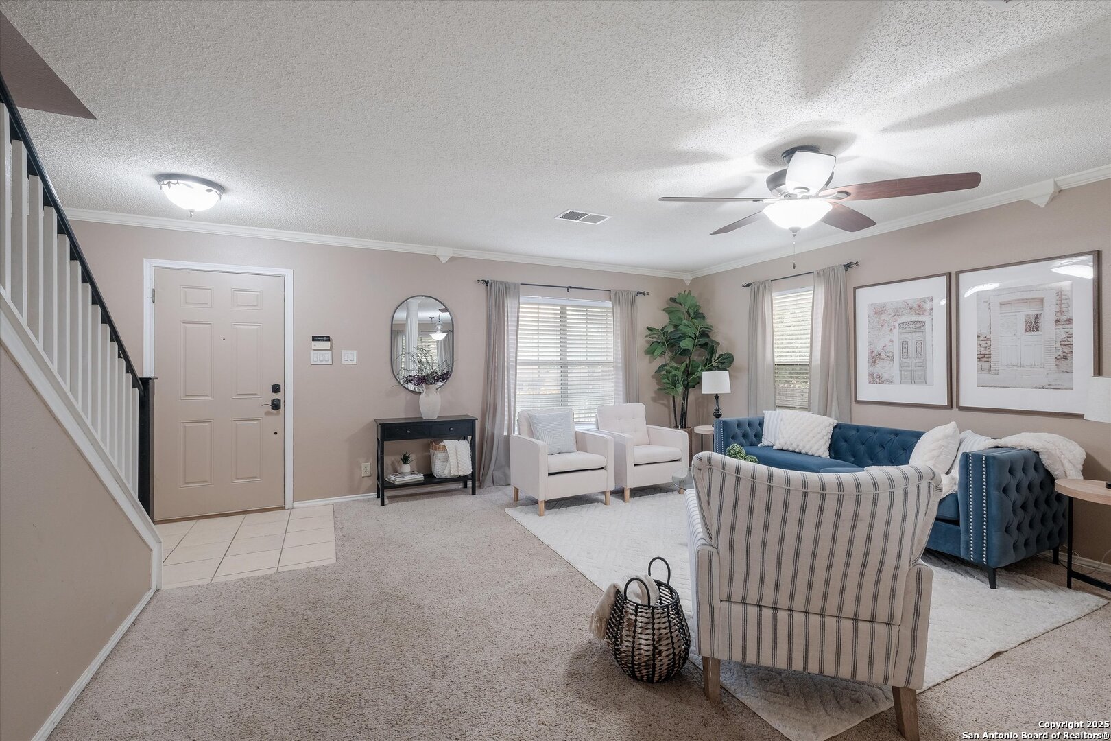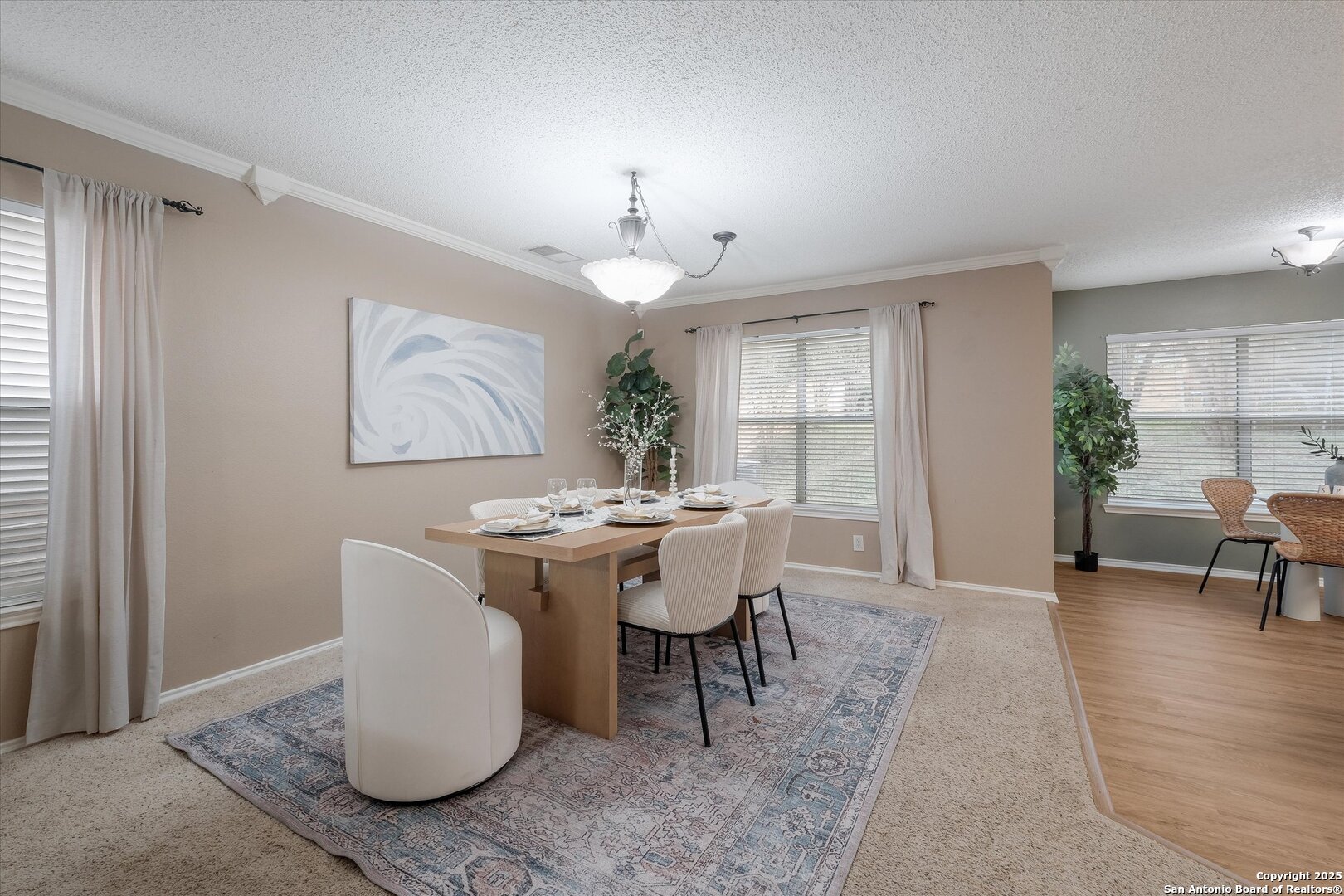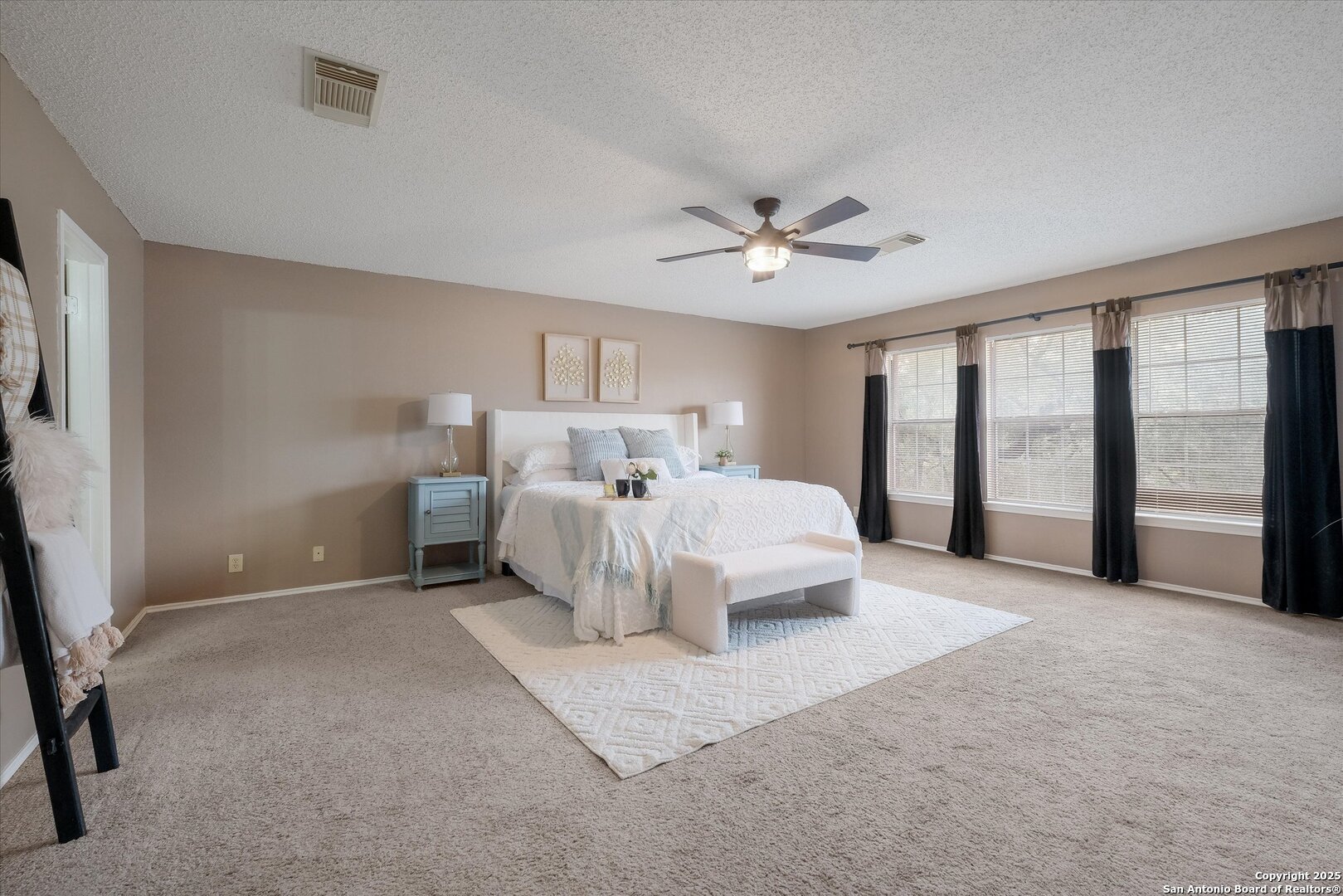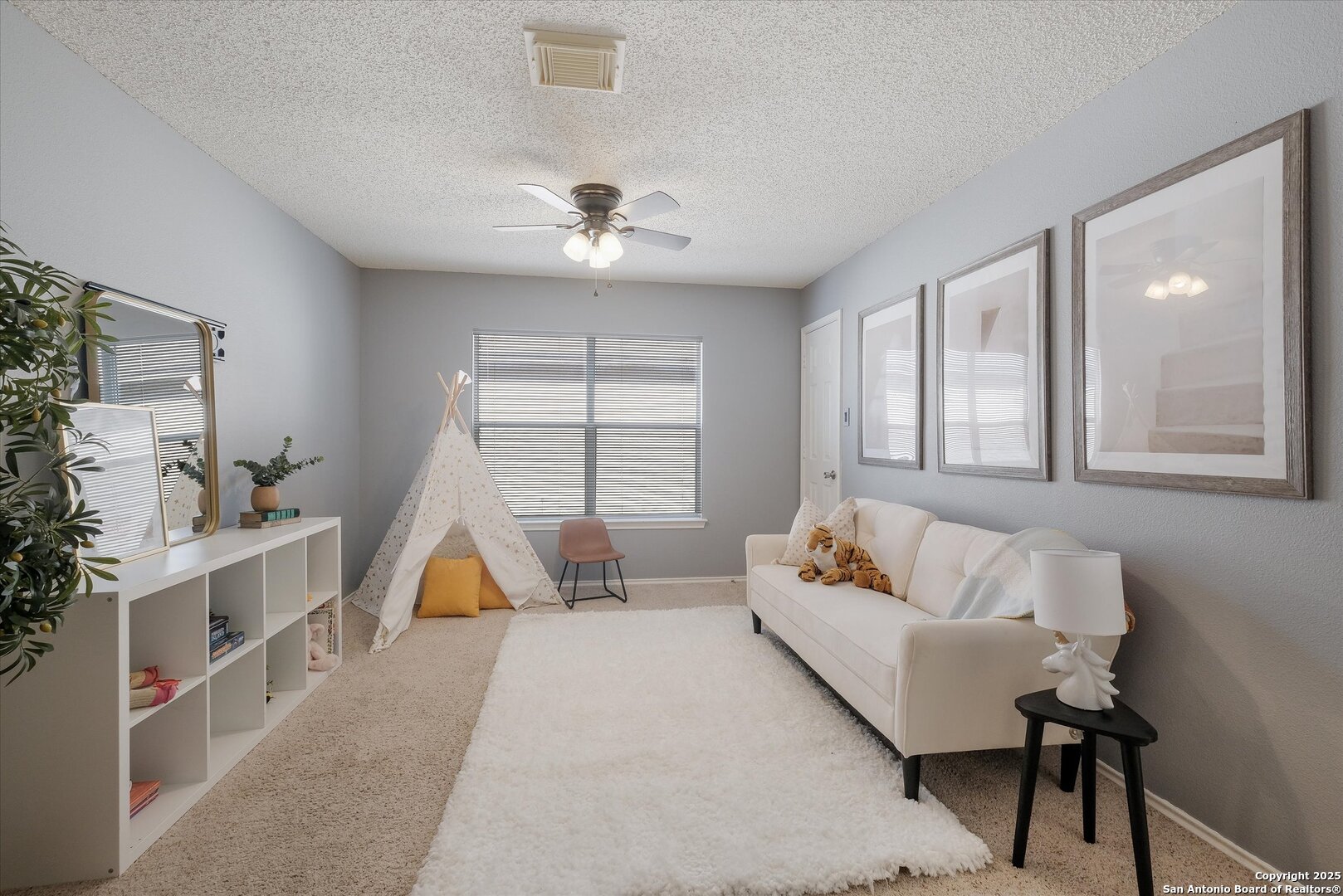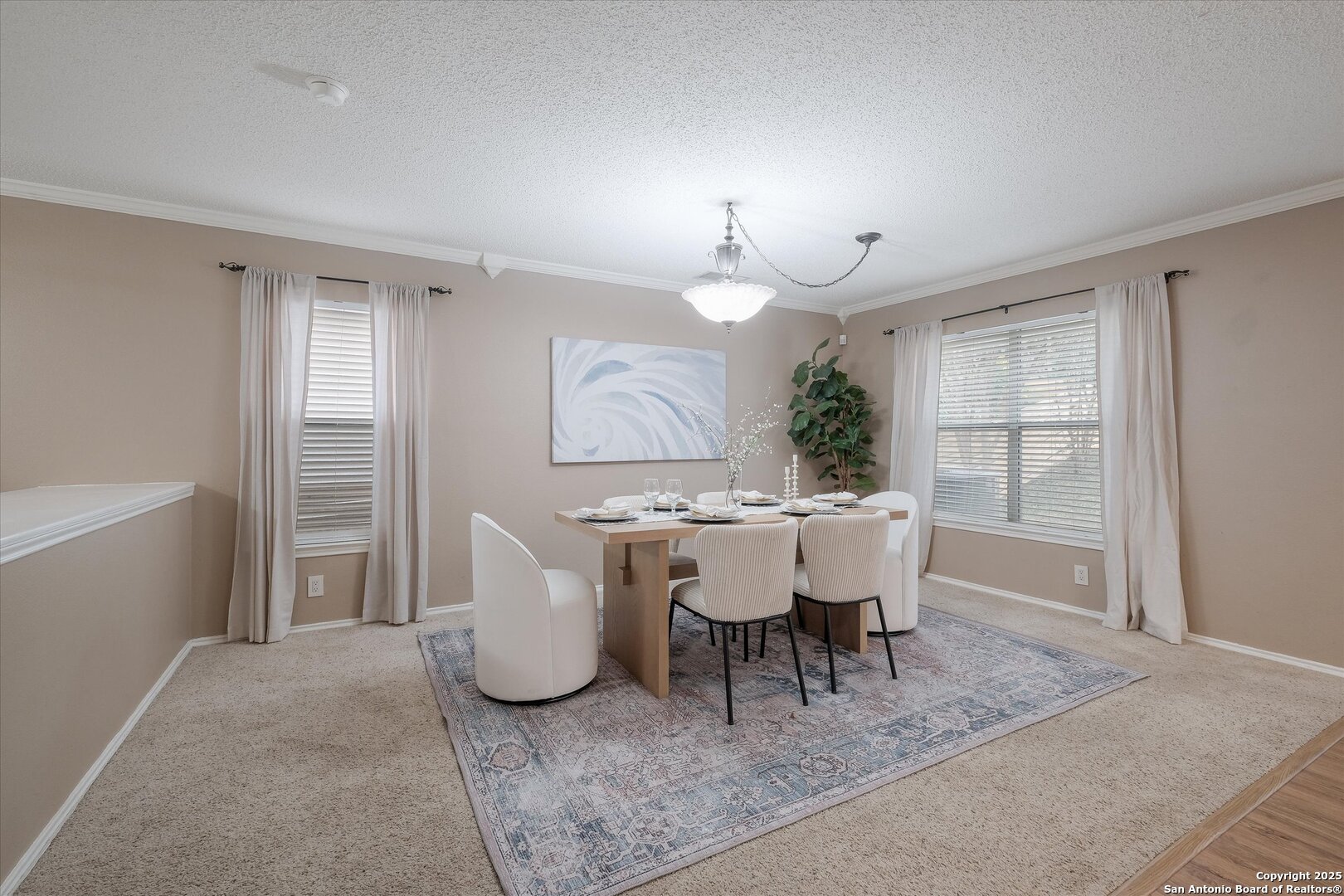 Welcome to 9115 Windward Trace! This spacious 3-bedroom, 2.5-bath home offers 2,421 sqft of comfort and versatility. The main level features open yet defined living and dining areas, separated by a half wall that adds structure without sacrificing the flow. The kitchen has been updated (2025) with a modern sink, dishwasher, and vinyl plank flooring. The super spacious pantry adds function, and breakfast nook brings in plenty of natural light and charm. Upstairs, you’ll find all three bedrooms along with a loft, ideal as a second living area, home office, or playroom. The oversized primary suite includes two walk-in closets and a spacious bath with dual vanities on opposite sides of the room, separated by a wall for added privacy. One of the secondary bedrooms also features an oversized closet. Enjoy a charming front porch, a new roof (2023), brand new HVAC system (2025), and a backyard with mature trees and room to entertain. This move-in ready home has been thoughtfully maintained and offers plenty of space to live, work, and play. Just a short walk from the house the amenity center is packed with features for all ages. Enjoy a sparkling pool with plenty of seating, a large covered pavilion for gatherings, multiple playgrounds, a basketball court, picnic spots, and winding trails. Whether you’re cooling off, hosting friends, or letting the kids play, it’s all right around the corner.