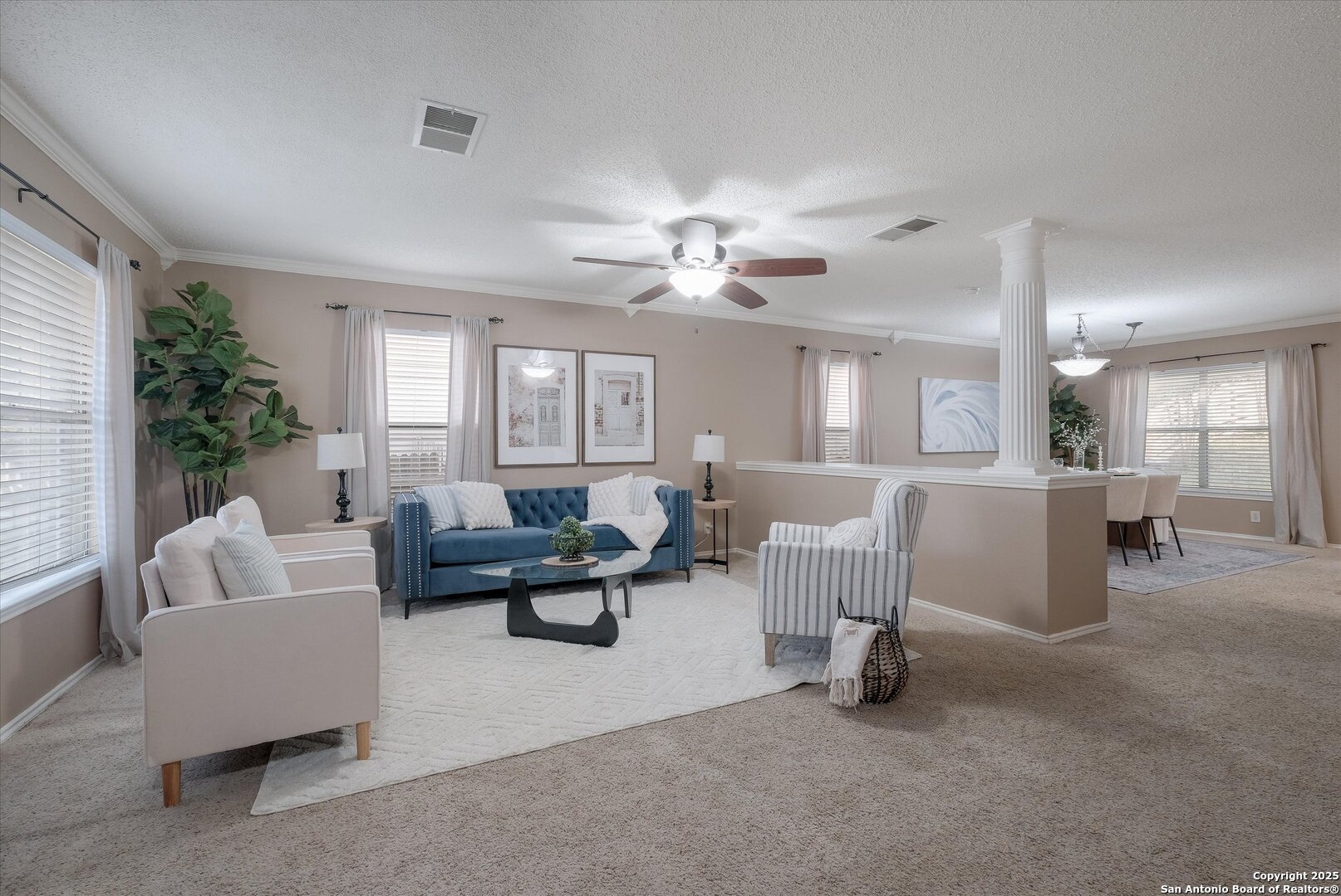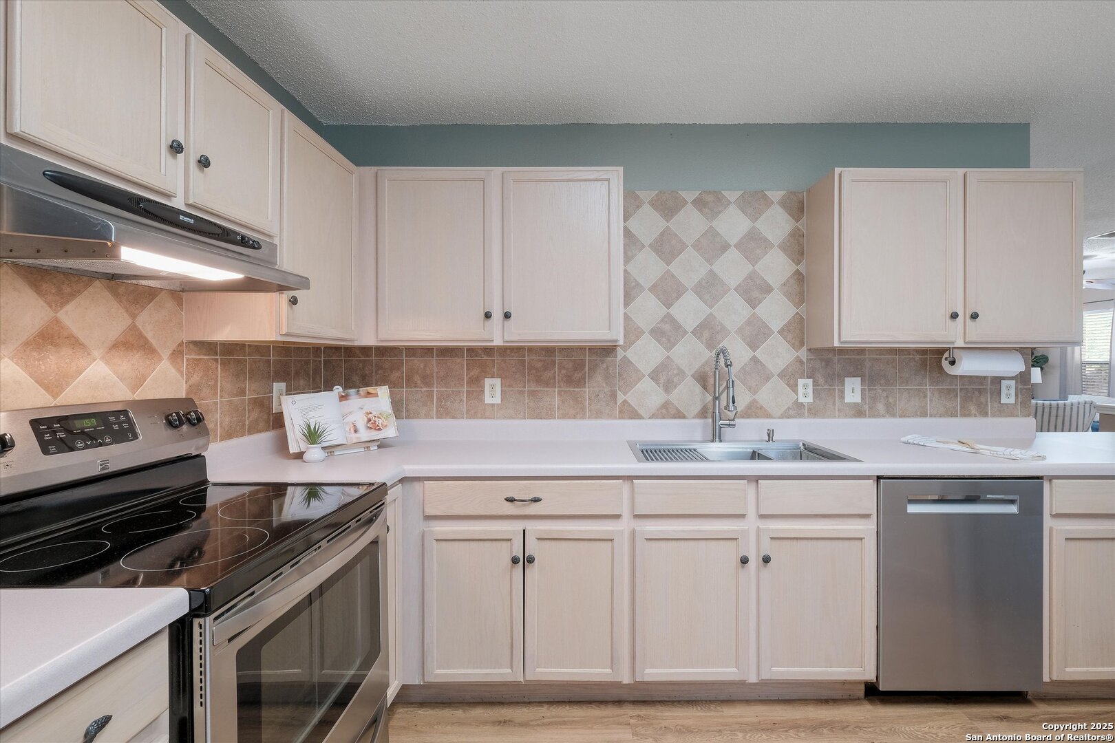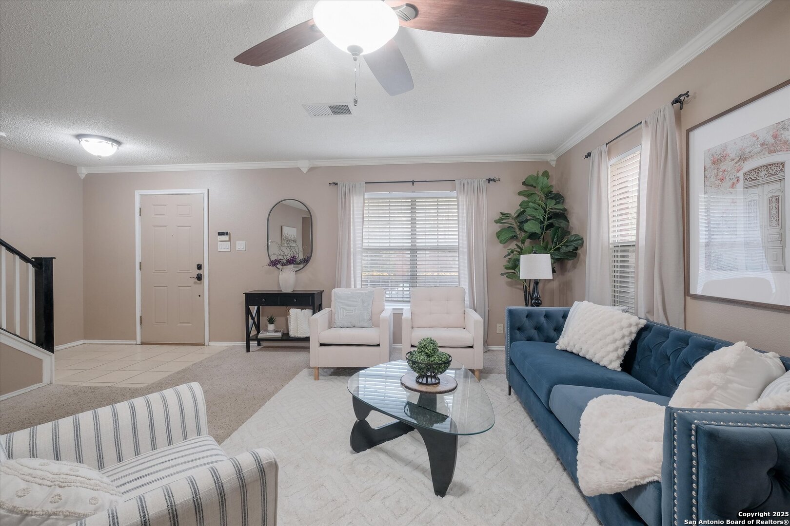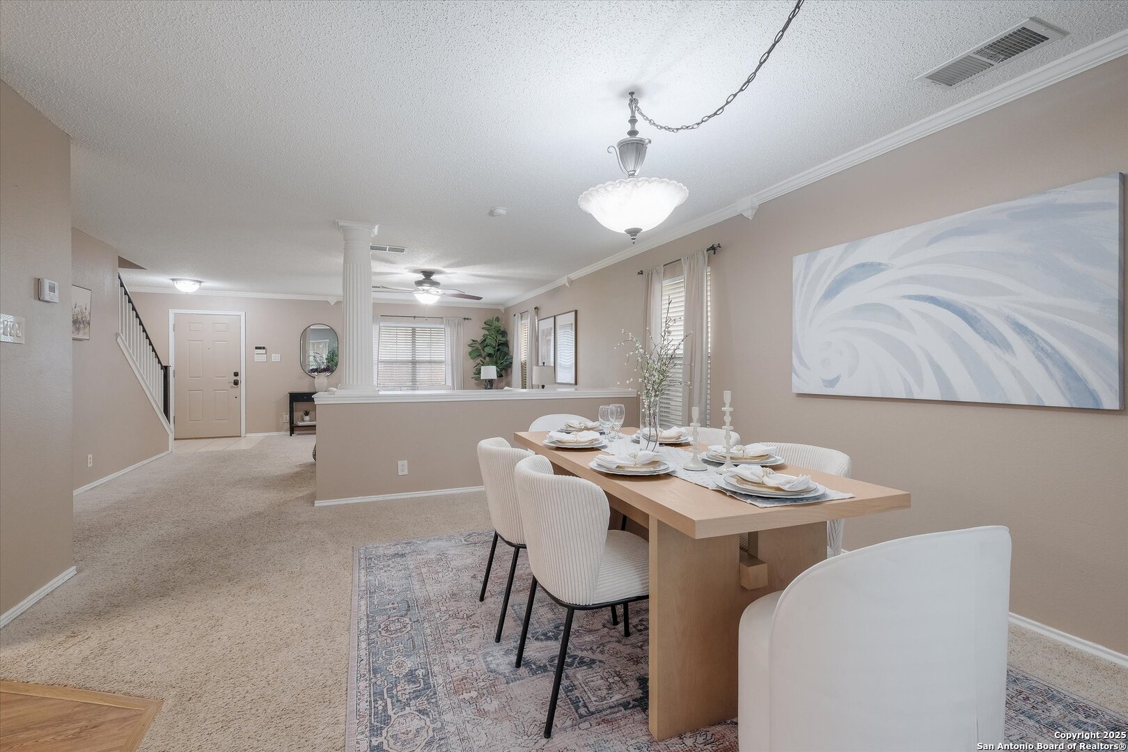 Welcome to 9115 Windward Trace! This spacious 3-bedroom, 2.5-bath home offers 2,421 sqft of comfort and versatility. The main level features open yet defined living and dining areas, separated by a half wall that adds structure without sacrificing the flow. The kitchen has been updated (2025) with a modern sink, dishwasher, and vinyl plank flooring. The super spacious pantry adds function, and breakfast nook brings in plenty of natural light and charm. Upstairs, you’ll find all three bedrooms along with a loft, ideal as a second living area, home office, or playroom. The oversized primary suite includes two walk-in closets and a spacious bath with dual vanities on opposite sides of the room, separated by a wall for added privacy. One of the secondary bedrooms also features an oversized closet. Enjoy a charming front porch, a new roof (2023), brand new HVAC system (2025), and a backyard with mature trees and room to entertain. This move-in ready home has been thoughtfully maintained and offers plenty of space to live, work, and play. Just a short walk from the house the amenity center is packed with features for all ages. Enjoy a sparkling pool with plenty of seating, a large covered pavilion for gatherings, multiple playgrounds, a basketball court, picnic spots, and winding trails. Whether you’re cooling off, hosting friends, or letting the kids play, it’s all right around the corner.